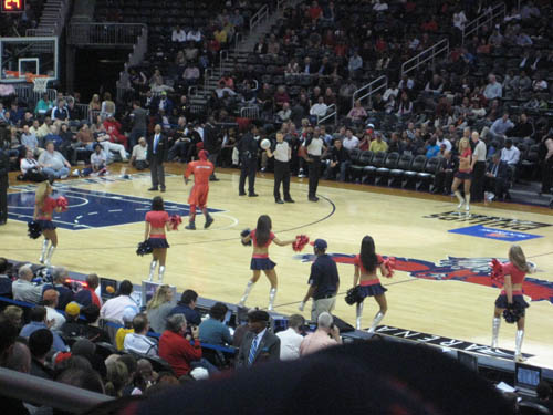 Tonight, Max and I saw our first basketball game at Phillips Arena, Atlanta. Kent & Steph’s team, The Hawks, went down to the Denver Nuggets by about 15 points. It was a pretty tight, exciting game for most of it, Atlanta falling off just at the end (they played last night & ran out of gas).