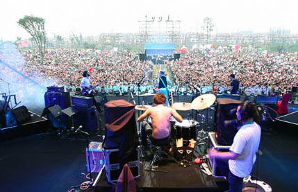 At Beijing station we caught on overnight train, like a moving scout camp completed with rows and rows of triple bunks and hundreds of people, to Dalian for tonight’s show.