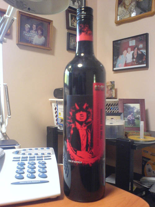 Just got back from the shops, down in the town, & brought this back: One very fine bottle of AC DC Cab Sav. He he.